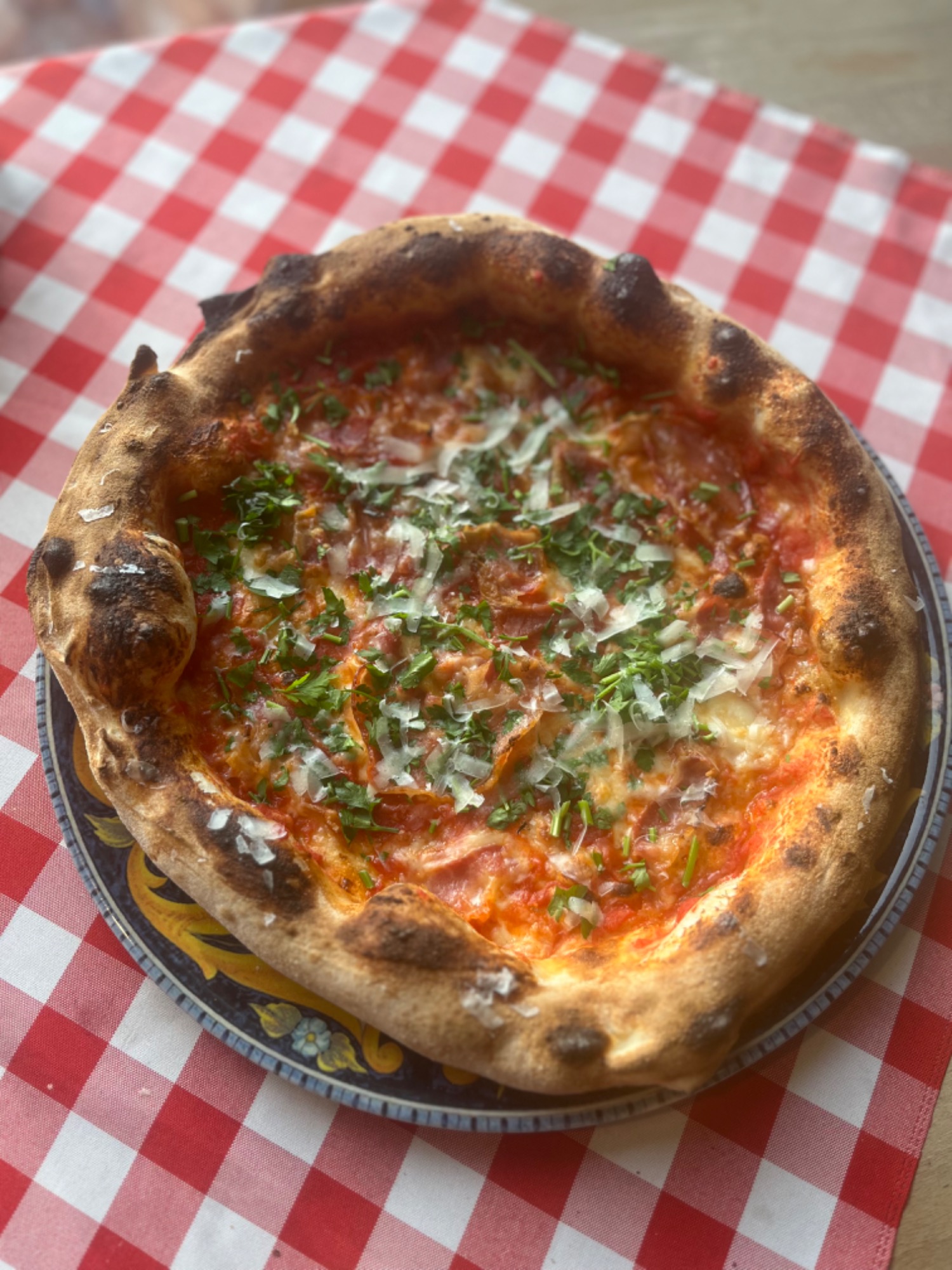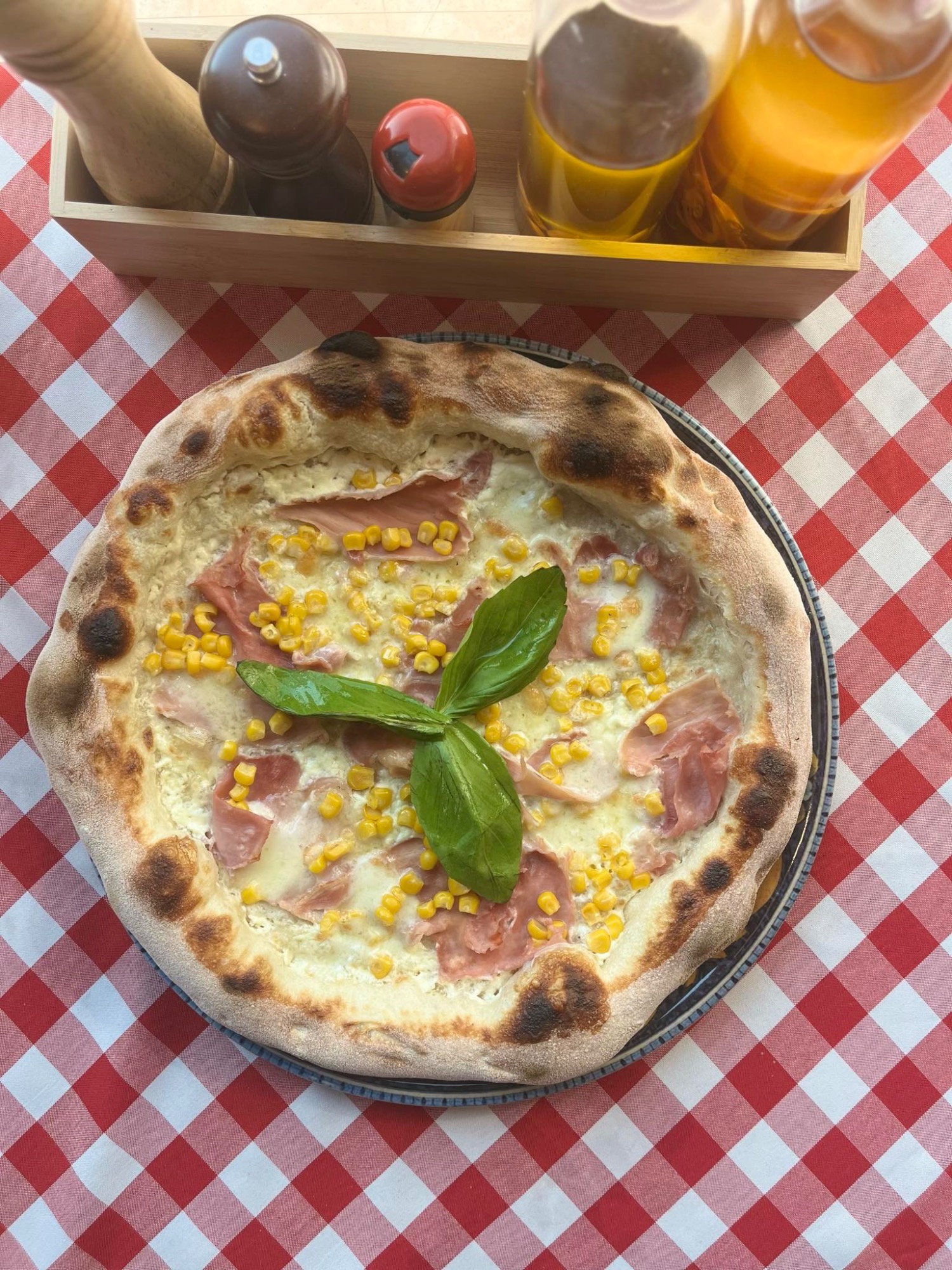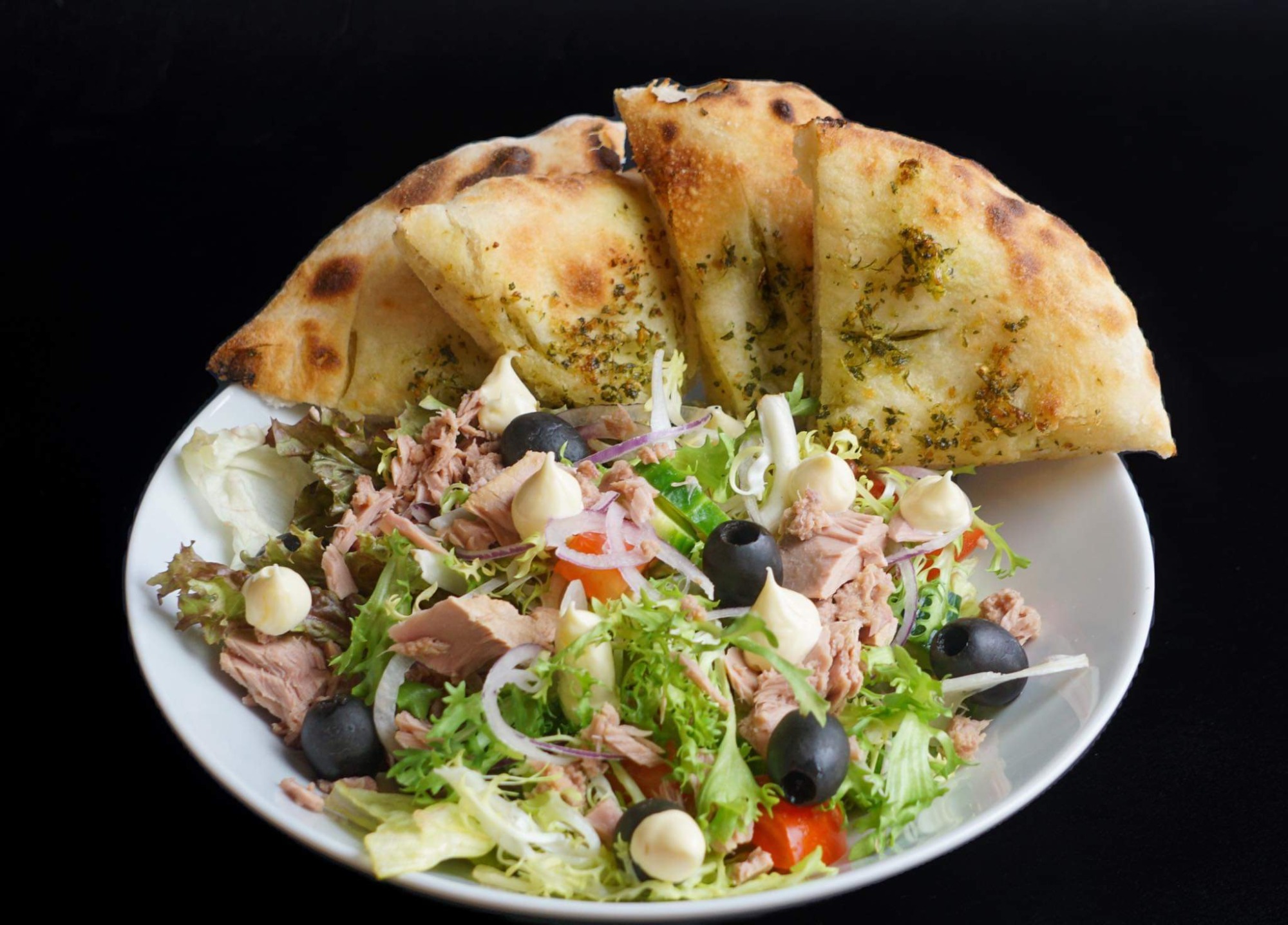 Sos bbq i majonezowy, wołowina Angus, bułka wypiekana w naszym piecu, chips z włoskiego boczku(pancetta), ser cheddar,czerwona cebula,pomidor, ogórek konserwowy,Mix salat opakowanie